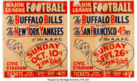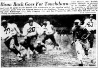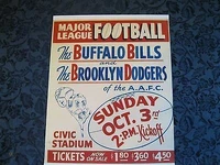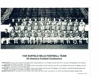 The Buffalo Bills was an American Football team, based in Buffalo, NY, that played in the All-America Football Conference from 1946 to 1949. During its first season in 1946, the team was known as the Buffalo Bisons. Unlike the Cleveland Browns, San Francisco 49ers, and Baltimore Colts, the franchise was not one of the three AAFC teams that merged with the National Football League prior to the 1950 season.