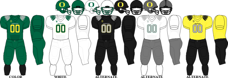 - ↑ Miller, Shawn (June 27, 2006). "UO unveils new football uniforms". Oregon Daily Emerald. http://www.dailyemerald.com/home/index.cfm?event=displayArticle&ustory_id=3b5e2b9b-1835-4e3e-b00d-04ab9b185ba2&page=1. Retrieved May 6, 2009. [dead link]